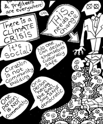 Democracy involves authentic and collective, large group dialogue. As art psychotherapists, we know that dialogue is not just about words. It includes all forms of expression in our community including silences, different kinds of behaviour and creativity.